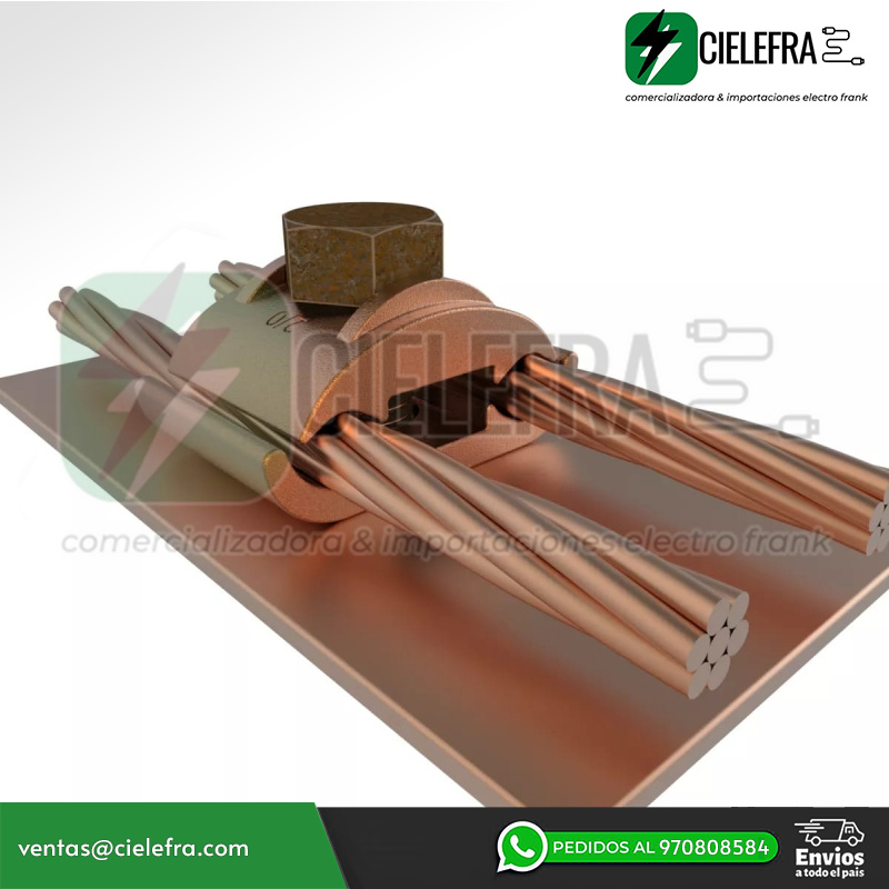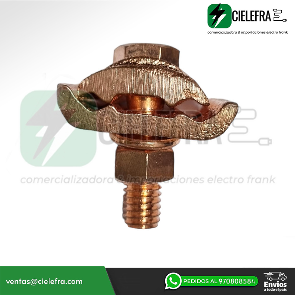 Se utilizan para sujetar 2 cables desnudos paralelos a una superficie plana, se fija con una sola llave y pueden trabajar directamente enterrados en concreto.