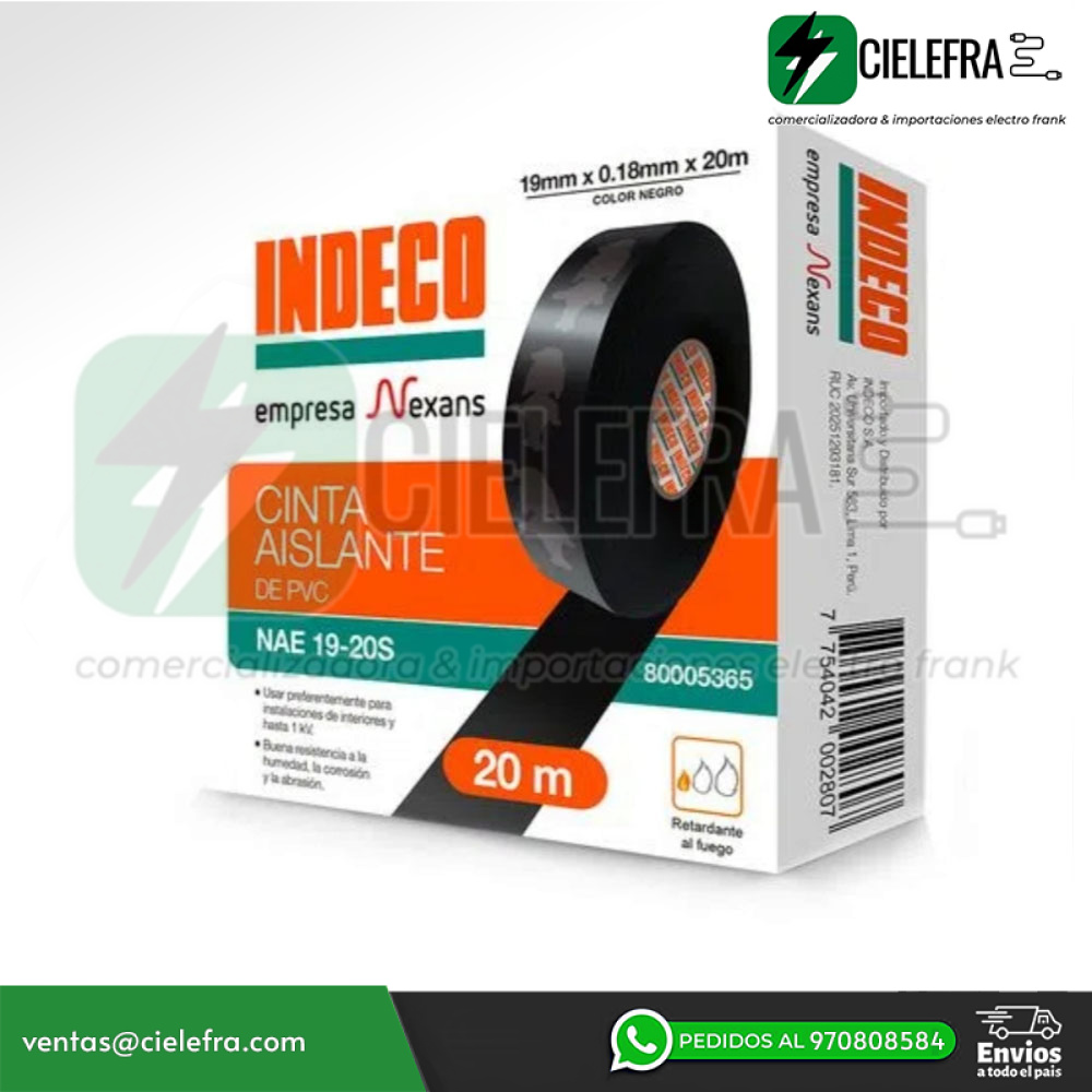 Cinta eléctrica aislante, diseñada para usarse en instalaciones exteriores e interiores de hasta 600 volts. Se puede emplear para el aislamiento e identificación de conductos.