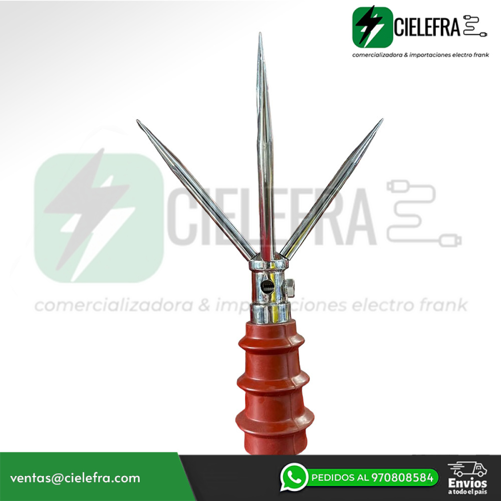 El pararrayos tipo Franklin o punta captadora tetrapuntal realiza una ionización natural. Limita su radio de protección en forma de cono para una descarga controlada y segura del rayo a tierra. La instalación de pararrayos punta Franklin y su configuración puede ser de una o varias puntas. Las más populares son las bayonetas de una sola punta y los tetrapuntales . De esta forma, un pararrayos tipo Franklin debidamente instalado va a proteger las instalaciones contra los picos de voltaje. Cotiza nuestros productos y un pararrayos Franklin de calidad, al mejor precio.