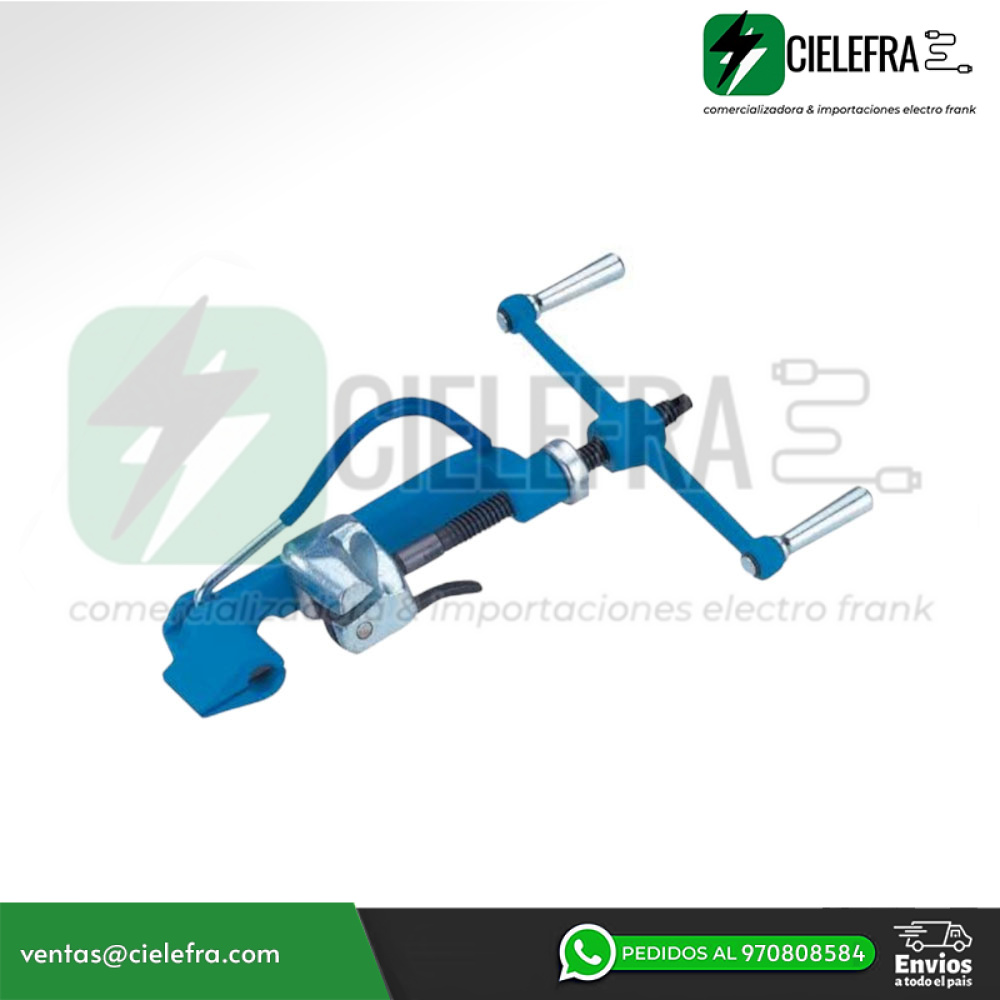 Se utiliza para colocar flejes, abrazaderas y sujeción en general. Tensiona más de 2400lbs, con acabado azul de pintura epóxica en polvo que minimiza el impacto químico y de elementos corrosivos. Hecho de acero forjado.